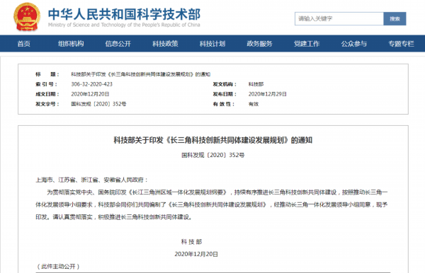 我苏网讯 日前,科技部网站发布“关于印发《长三角科技创新共同体建设发展规划》的通知”,详情如下: