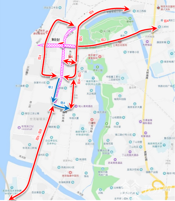 南京市交通运输局副局长罗睿介绍,因施工需要,建宁路(热河路-江边路)、热河路(郑和北路-建宁路)将临时封闭,自2021年1月9日首班车起,将有16条公交线路受影响临时绕行,其中包括10条日间线路和6条夜间线路。“本着尽量减少给附近居民出行影响的原则,线路临时绕经周边的公共路、郑和中路通行。”