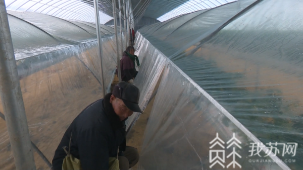 在盐城市建湖生态农业草莓基地,工人们合力搭建棚中棚,给草莓保温防冻,确保安全度过寒潮。在宿迁泗阳一家奶牛场,工人们为600头奶牛做好防寒保暖措施。