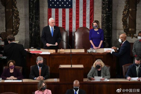 1月7日凌晨3:40,美国国会确认拜登获得超过270张选举人票,副总统彭斯宣布拜登当选第46任美国总统。