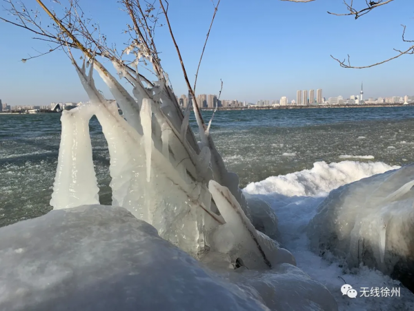 在BOSS级寒潮中,云龙湖“冰雕展”也拉开了序幕,云龙湖边的“速冻”奇观今天再次出现。