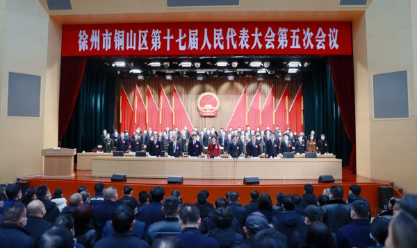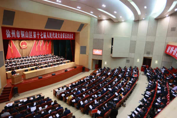 1月7日上午,徐州市铜山区第十七届人民代表大会第五次会议隆重开幕。大会主席团常务主席龚维芳、孙健、杨中良、何长征、蔡世旺、陈光、葛毅君出席会议并在主席台前排就座。孙健主持会议。高建民、刘光明、白有庆、杨传金、孟庆元、房浩、刘婧、于帆、韦洪涛、许海莉、陈根宝、康宁等区四套班子领导、主席团其他成员以及区人民法院代院长、区人民检察院检察长在主席台就座。
