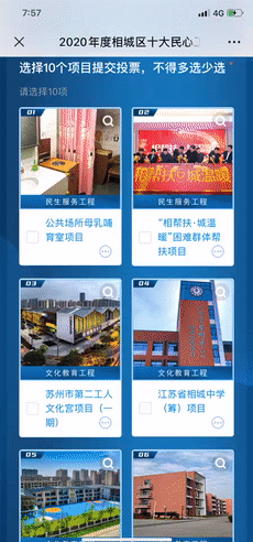 此次评选活动在“今日相城”官方微信平台进行公开展示,并接受社会公众投票,超过15000名市民参加了网络投票,另外还邀请了700多名在相的省市区镇四级人大代表和街道议政代表参加了评选投票,最终评选出了群众基础最强、百姓呼声最高的“十大民心工程”。