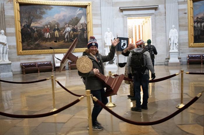 当地时间1月9日,据美国《国会山》报道,于6日闯入国会大厦并搬着众议院演讲讲台拍照的男子已被美国联邦官员逮捕,目前正等待审理结果。