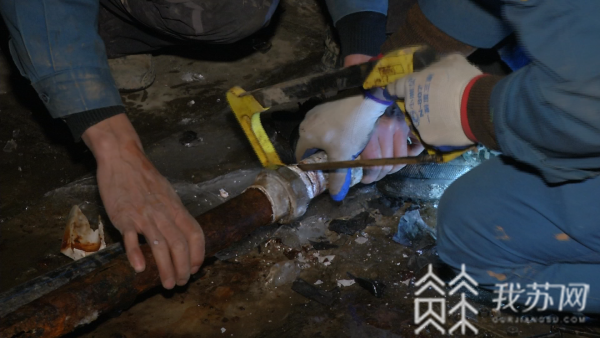 晚上7点半,南京水务公司管线管理所接到物业报修,世贸外滩新城小区有自来水表冻裂,部分居民家中水压降低、停水,抢修人员立即赶赴现场。