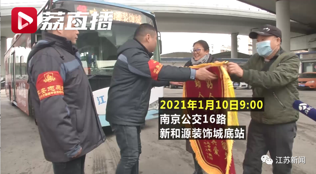 1月10日上午,南京市民王女士和家人一起,给16路公交车队送去了一面锦旗,当面对车队60多位司机道一声"感谢"。