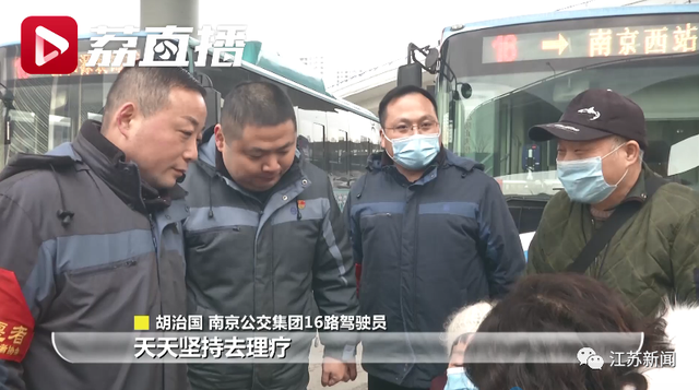 南京公交集团16路驾驶员胡治国说,这位老人带着他的老伴,天天坚持去理疗,我们看了心里面也蛮感动的,我们伸出援助之手,希望她能早日康复。