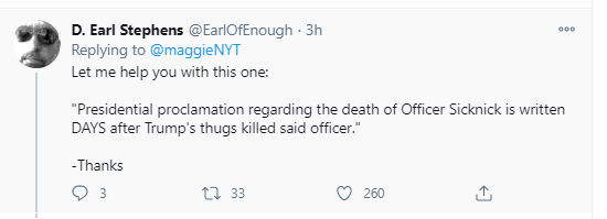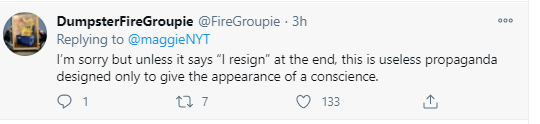 还有人认为,白宫应该在这份以特朗普的总统名义发布的公告中加入警察“是被特朗普的暴徒杀死”和“我引咎辞职”这样的内容才准确,否则这个公告就只是一份“政治宣传品”而已。