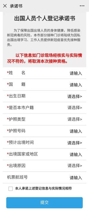 根据实际情况填写“出国人员个人登记承诺书”,并确认提交。