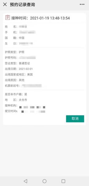 登记成功后查询可选接种门诊,并预约1天之后的门诊时间段,预约成功后可查看预约记录。如需取消预约,一定要在预约日期前一天的15:00前取消预约,否则按爽约处理。当天15:00后预约的次日接种将不能取消!