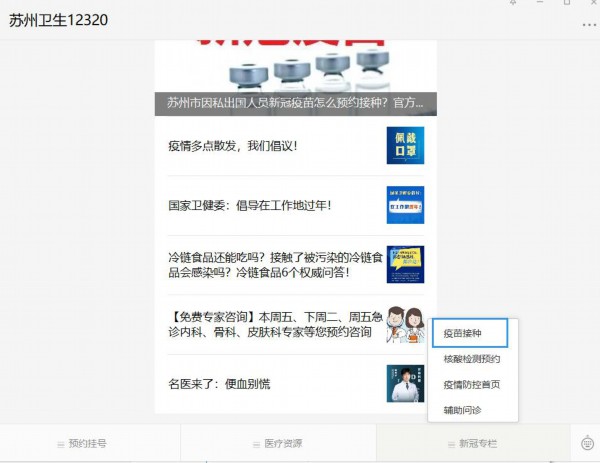 2021年1月11日10时起使用手机登陆“健康苏州掌上行”APP首页或登录“苏州卫生12320”微信公众号新冠专栏进行线上预约。