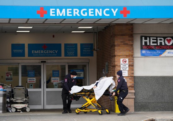 1月1日,在美国纽约,医护人员运送一名患者。(新华社记者王迎摄)