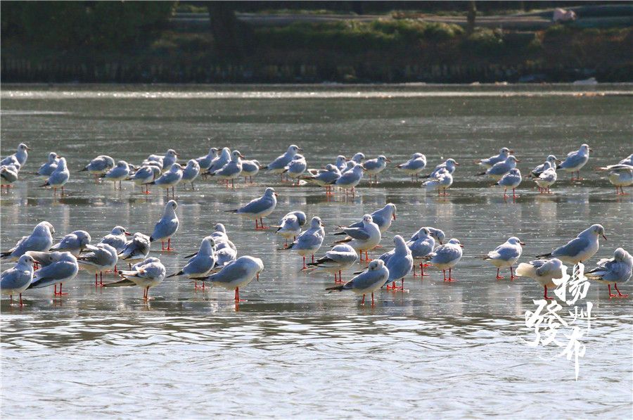 在宋夹城水域,数百只冬候鸟红嘴鸥在此栖息。它们时而在刚刚融化的水中快乐地沐浴,时而翩翩起舞,铺天盖地十分壮观。
