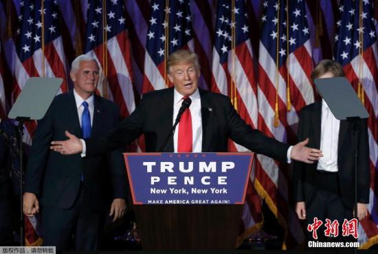 资料图:图为美国总统特朗普,身后是副总统彭斯。