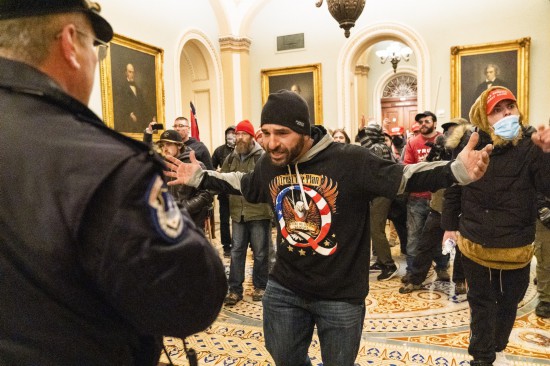 1月6日,示威者在美国华盛顿国会大厦内与警察对峙。新华社 图