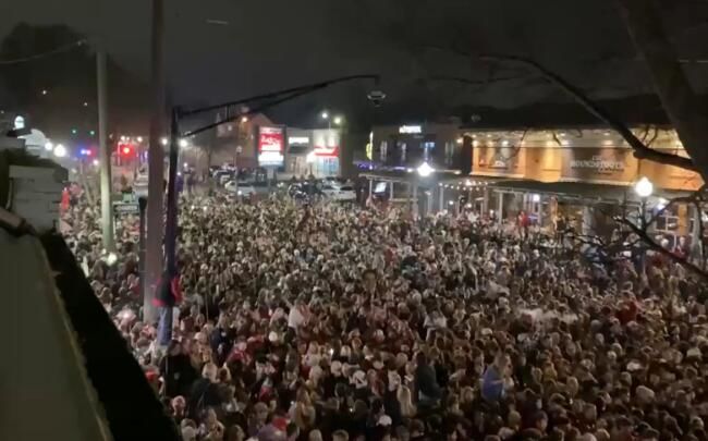 据CBS新闻报道,当地时间1月11日晚,美国阿拉巴马大学红潮队赢得美国大学生运动联盟橄榄球赛冠军。当晚,成千上万名球迷涌上街头庆祝。视频显示,密密麻麻的人群中,大部分人并没有戴口罩。他们无视疫情规定,挤作一团欢呼呐喊、扔啤酒瓶。据约翰斯•霍普金斯大学数据,截至1月13日,美国新冠疫情累计确诊人数超过2293万人,累计死亡人数超过38万。