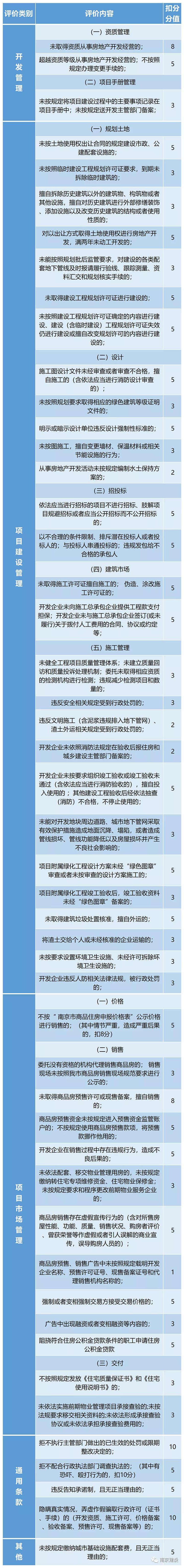现代快报记者注意到,《办法》明确,由市建委会同11个涉及房地产开发建设经营管理的部门,共同开展企业信用体系建设,将房地产开发全过程相关行为纳入评价标准;强化问题导向,全面梳理了开发企业各类不良行为,将存在的热点问题、焦点问题纳入标准,特别是明确了“直接定级”项,加大对开发行为的规范力度。