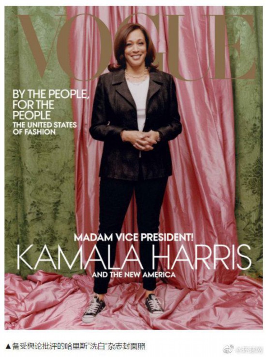 《时尚》杂志10日公布了2月刊的封面照片,主角正是即将就职的哈里斯。照片中的哈里斯身穿黑色上衣和长裤,脚上穿着一双运动板鞋。BBC表示,有社交媒体用户批评封面照没有反映哈里斯的成就,不过温图尔表示,这些照片是为了突出她的成功。