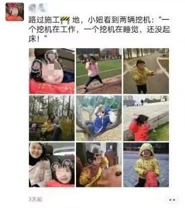 周春梅的最后一条微信朋友圈,定格在了2021年1月9日。朋友圈中,周春梅分享了七张女儿的个人生活照、两张与女儿的合照。她写道,“路过施工地,小妞看到两辆挖机:‘一个挖机在工作,一个挖机在睡觉,还没起床!’”
