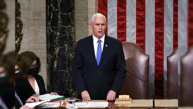 △美国副总统彭斯在6日出席在华盛顿特区举行的国会联席会议,认证选举人票。之后他在12日表示,自己不会援引美国宪法第25条修正案弹劾现任总统特朗普。(图片来源:美联社)