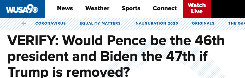 △部分美国媒体开始探讨,如果特朗普被弹劾,彭斯是否会成为第46任美国总统。(图片来源:WUSA9)
