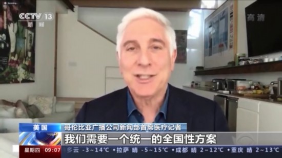哥伦比亚广播公司新闻部首席医疗记者: 想象一下,你在踢一场足球赛,有50名教练在指挥。我们需要一个统一的全国性方案,同时各地方可以根据情况自己调整。