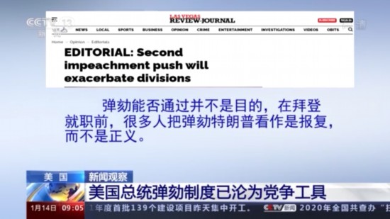而这一次,对美国总统特朗普第二次弹劾,美国《拉斯维加斯评论报》认为,弹劾能否通过并不是目的,在拜登就职前,很多人把弹劾特朗普看作是报复,而不是正义。