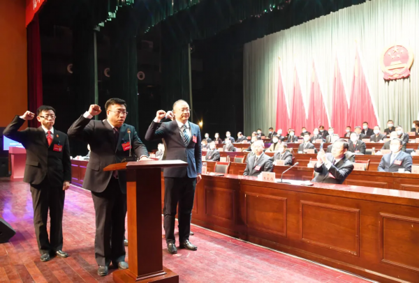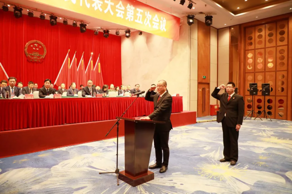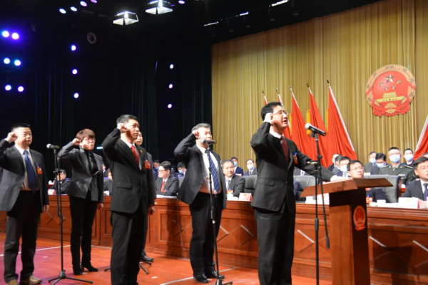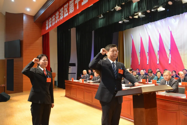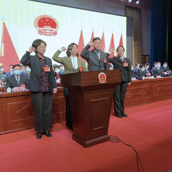 1月13日上午,在金湖县第十四届人民代表大会第五次会议上,与会代表一致通过了关于金湖县人民法院工作报告的决议,徐冬然同志当选为金湖县人民法院院长并进行宪法宣誓。
