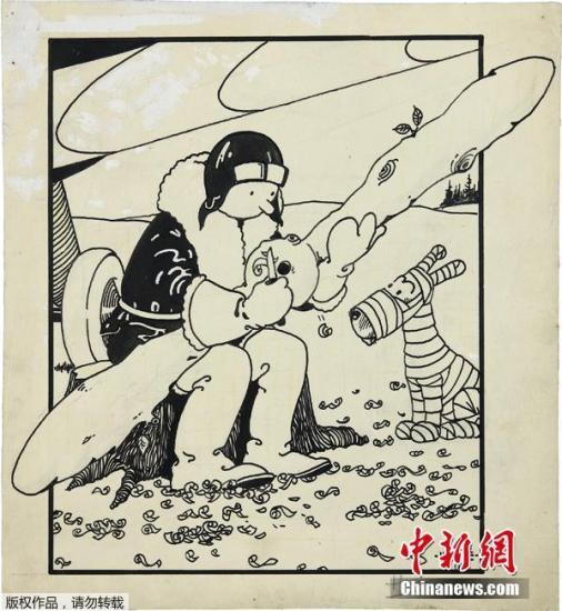 中新网1月15日电 据外媒报道,当地时间14日,法国艾德(Artcurial)拍卖行称,《丁丁历险记》创作者埃尔热的一幅原画,在线上拍卖会以320万欧元的价格拍出,打破了此前的漫画艺术品拍卖纪录。据称,2014年,埃尔热的一幅漫画曾以265万欧元成交价拍出。