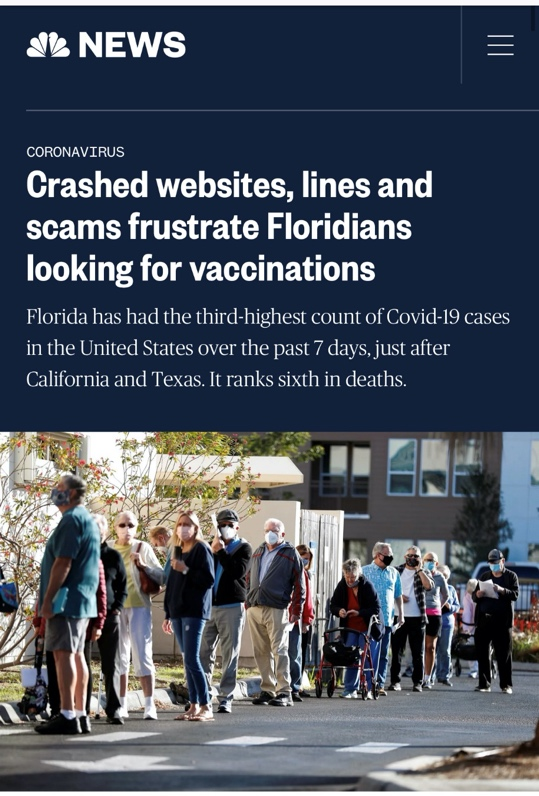 △全国广播公司报道:疫苗预约网站崩溃、电话打不通、疫苗诈骗频发让佛罗里达州居民沮丧