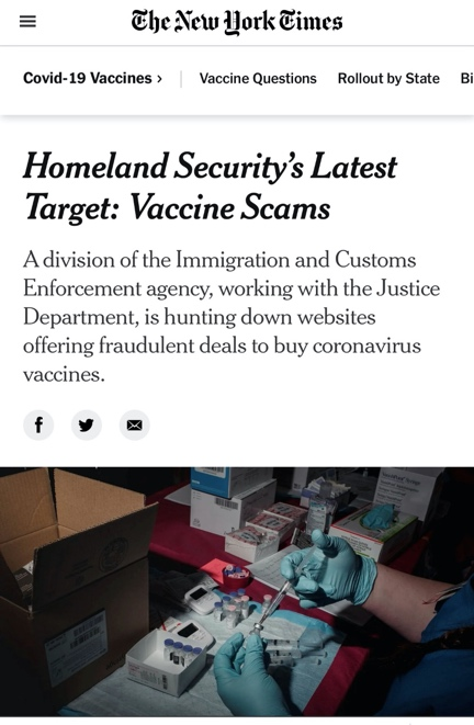 △《纽约时报》报道称,疫苗诈骗已经在全国范围内出现