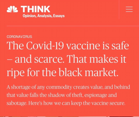 △全国广播公司报道称,违规获取的疫苗或将在黑市出现