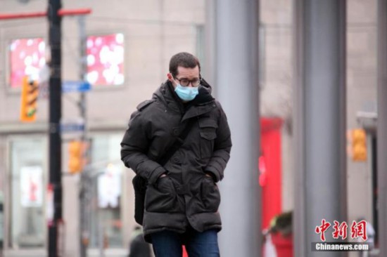 当地时间1月14日,佩戴口罩的民众行走在加拿大多伦多市中心街头。多伦多所在的加拿大人口第一大省安大略省从当天开始实施“居家令”。 中新社记者 余瑞冬 摄
