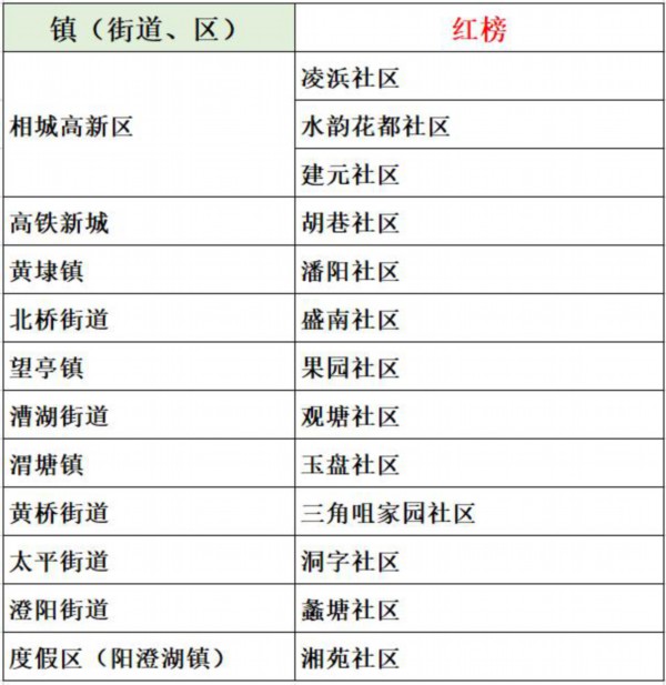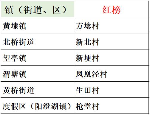 备注:*黄桥街道张庄村、北庄村纳入社区红灰榜考核,漕湖街道卫星村、下堡村纳入社区红灰榜考核