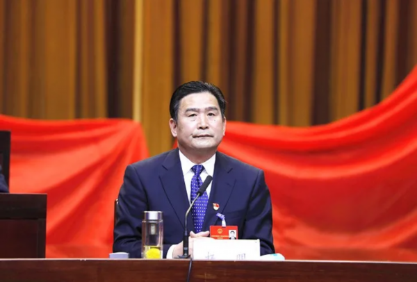 ▲大会主席团常务主席、执行主席杨明主持第三次全体会议