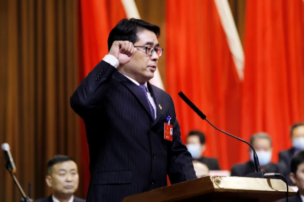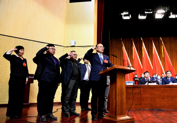▲胡乐福带领新当选的区人大常委会委员宣誓