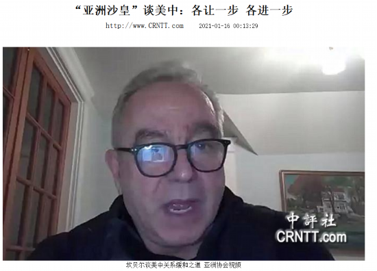 据香港中评社报道,坎贝尔14日在出席亚洲协会举办的活动上提出有关“停止美中关系直线下坠”的设想,他表示中美双方应暂停针锋相对,各自后退一步,再各自前进一步,发出建立可行的美中关系愿望的信号。