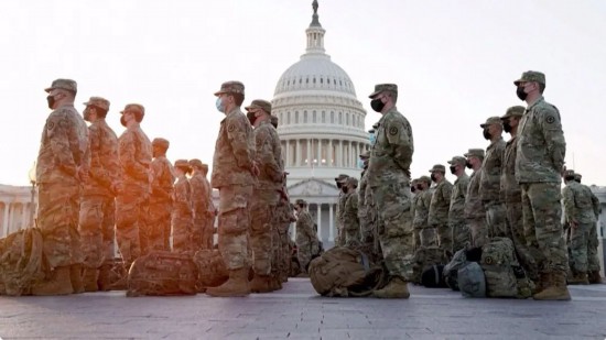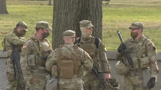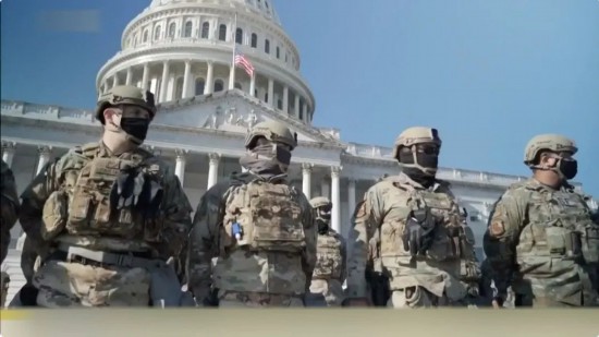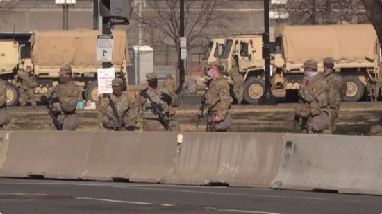 连日来,美国首都华盛顿的安保措施日趋严密,国民警卫队队员荷枪实弹巡逻。五角大楼日前宣布,已派遣2.5万名国民警卫队士兵协助总统就职典礼的安保工作。