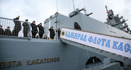自2020年12月30日起,“卡萨托诺夫海军上将”号护卫舰开始远洋巡航行动。再次此间,该艇已经驶过了超过4000海里的航程,此前还在比斯开湾开展了搜索敌方潜艇的演习。在开始首次远航之前,北方舰队对官兵进行了长期培训。水手们在巴伦支海的北方舰队基地和靶场进行了所有科目训练,包括数次发射“口径”巡航导弹。