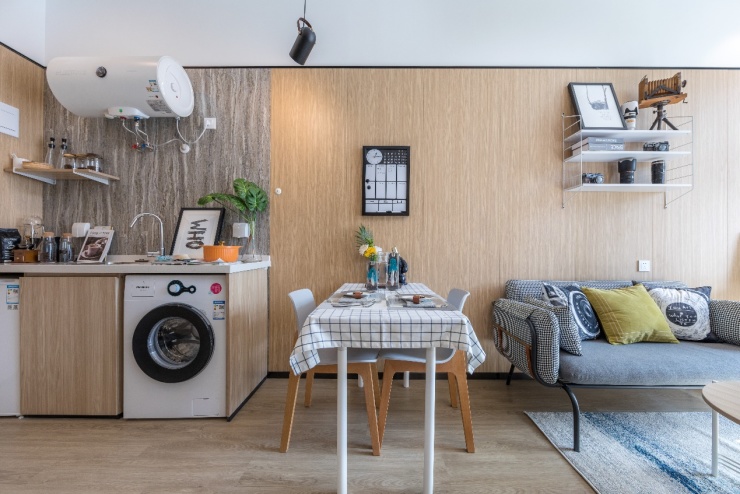 作为高品质的青年居住空间,龙湖冠寓不再只满足日常的居住需求,而是在设计上更加遵循年轻人的生活方式,大胆的色彩对比,有趣的功能区布局,每间公寓室内均是一室一厅亦或开间式格局,麻雀虽小却五脏俱全。合理的床位安排,不仅利用了每一寸的空间,墙壁内、空隙间都被赋予实用性的功能。白净的墙面与床品交织出静默与宁和的睡眠气息,不论是木质家具,还是品牌家电,都发挥了更为深刻的存在感。