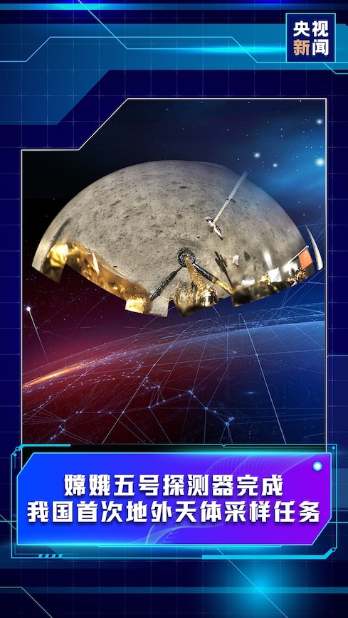 1。嫦娥五号探测器完成我国首次地外天体采样任务