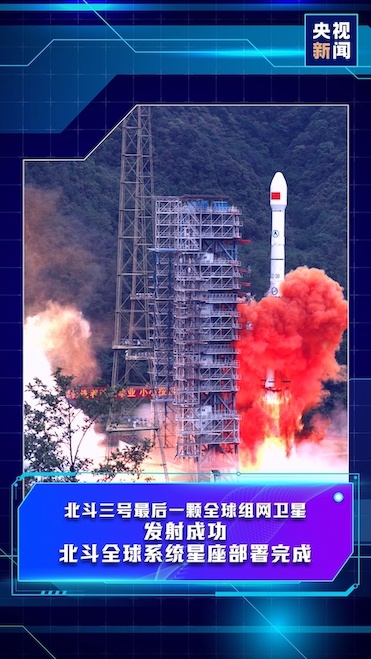 2020年6月23日9时43分,我国在西昌卫星发射中心用长征三号乙运载火箭,成功发射北斗系统第五十五颗导航卫星暨北斗三号最后一颗全球组网卫星。