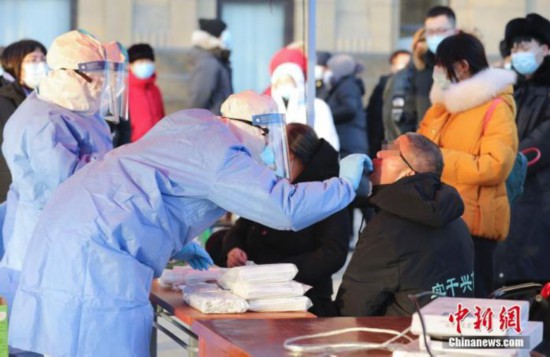 资料图为大兴区高米店街道的一处采样点,工作人员对居民进行核酸检测采样。中新社记者 赵隽 摄