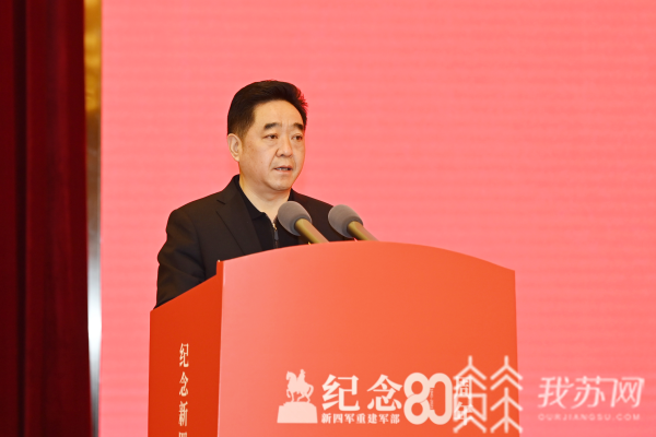 张爱军在讲话中表示,新四军军部在盐城正式重建,揭开了新四军发展壮大和正规化建设的崭新一页,在新四军历史上具有里程碑意义。江苏是新四军坚持抗战的主要地区,在敌强我弱、日伪顽强夹击的艰苦复杂斗争中,在抗日烽火考验和洗礼中,铸就了新四军铁军精神。80年来,新四军铁军精神始终激励一代又一代江苏儿女,不忘初心、牢记使命,开拓进取、接续奋斗。今年是中国共产党成立100周年,我们要时刻铭记老一辈革命家的历史贡献,广泛开展新四军历史学习教育,不断深化新四军铁军精神宣传阐释,持续打造新四军红色文化品牌,充分发挥新四军纪念场馆的宣教功能,奋力开创“强富美高”新江苏更加美好的未来。张爱军在讲话中说,盐城是新四军重建军部所在地,盐阜人民对新四军有着深厚感情,要在“成为绿色转型典范”的新实践中,擦亮新四军红色文化品牌、讲好新时代铁军故事,让新四军铁军精神在盐阜大地代代相传、熠熠生辉。