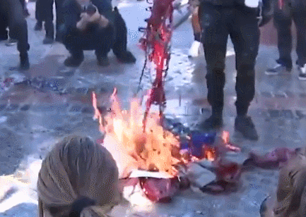 当地时间20日,也就是美国当选总统拜登就职当天,一群抗议者聚集在科罗拉多州的议会大厦外,他们身穿黑衣,并当着警察的面焚烧美国国旗。