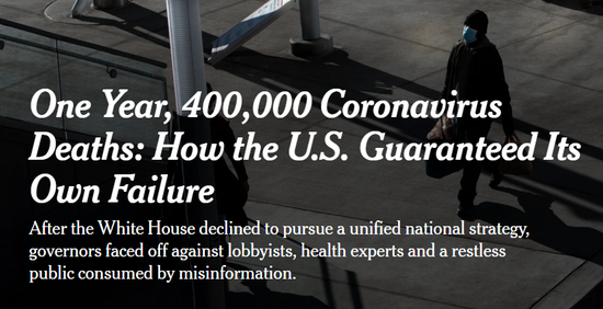还有更残酷的事实:最新统计显示,截至美东时间19日14时21分(北京时间20日凌晨3时21分),美国新冠肺炎病亡人数已超40万!