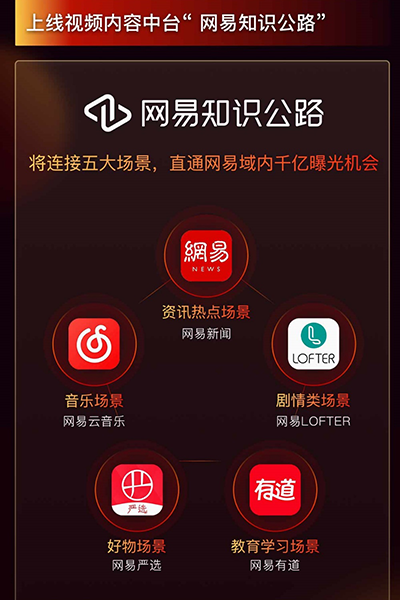 同时,网易上线全网首个从选题脚本赋能创作者的知识短视频创作平台——网易知识公路。未来,网易知识公路将作为视频内容中台,全面打通网易新闻、网易云音乐、网易严选、网易LOFTER、网易有道五大场景,实现视频内容“一次入库,全网易分发”。