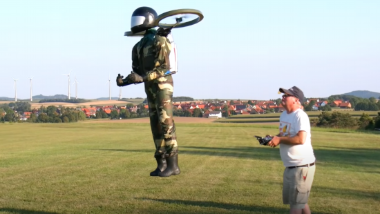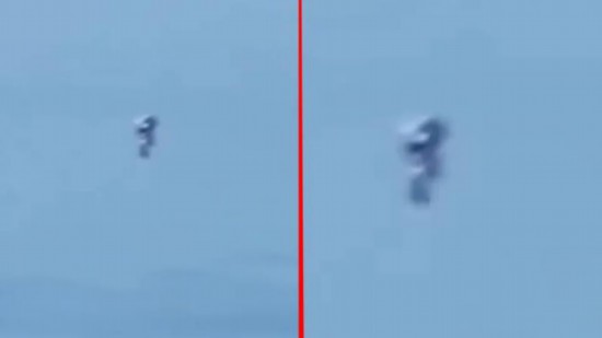 而布兰科所说的视频为德国的一个身着迷彩服的人体模型被多旋翼无人机带上天的短片。