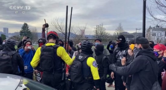 央视网消息:当地时间20日下午,也就是美国新总统就职仪式后的几小时,美国俄勒冈州波特兰市爆发了一场激烈的抗议活动。据报道,抗议者从波特兰东南部的革命大厅出发,一路来到位于东北部的俄勒冈州民主党总部大楼,大楼遭到破坏。期间当地警方出动,逮捕了数人。警方称,现场抗议者有至少100人,他们反对警察暴力执法。