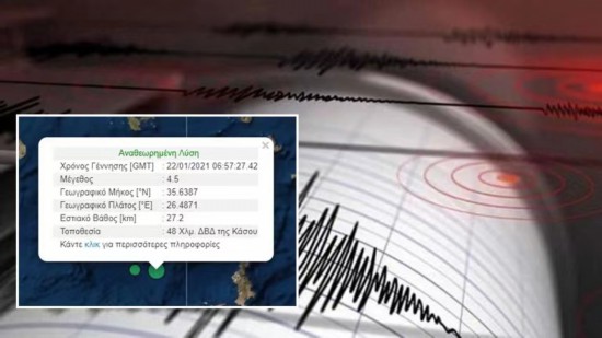 据希腊地球动力学研究所发布的信息,当地时间1月22日早5时57分,希腊克里特岛卡索斯(Kassos)西北48公里处发生里氏4.5级地震,震源深度27.2公里。